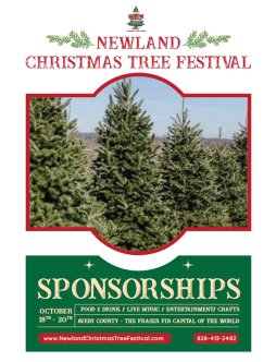 Avery County is the Fraser Fir Christmas Tree capital of the world. The Newland Christmas Tree festival starts on the 3rd weekend in October so to run the same day as The Woolly Worm Festival in Banner Elk, NC. Woolly Worm festival ends at 5:00pm and the Christmas Tree Festival is open until 9:00pm. There shall be 50 trees with lights lining the perimeter of the town square; members of the public can vote for their favorite tree. At the festival will be a live music stage, a magicians stage, face painting, bounce houses, stilt walkers, jugglers, fireworks and more. This festival is free and our trees will be lit through New Year's Day. The Christmas Tree going to the White House shall pass through our venue sometime in mid-November. This is the quintessential family event run by a non-profit with half the proceeds going to the Avery County Future Farmers of America.